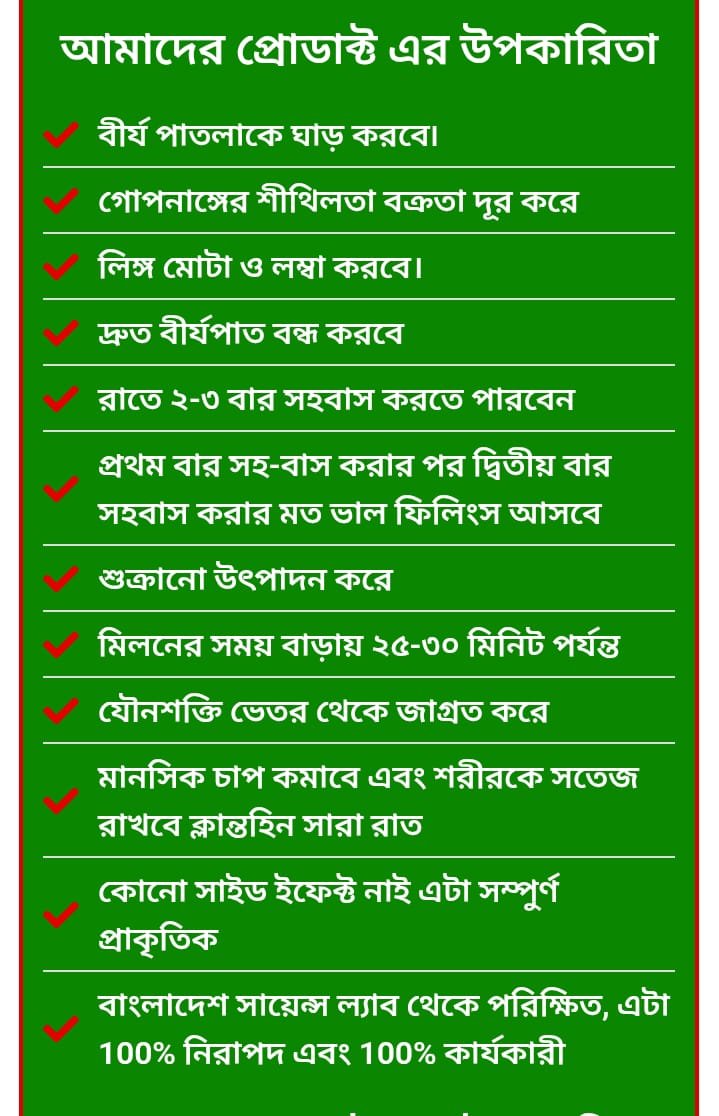খাওয়ার পরে কাজ না করলে পন্য রিটার্ন করে দিবেন এবং সাথে সাথে টাকা ব্যাক পাবেন। আমাদের এই নম্বর ছাড়া 01635-633788(WhatsApp) অন্য কোথা থেকে সংগ্রহ করলে এটা প্রযোজ্য হবে না।